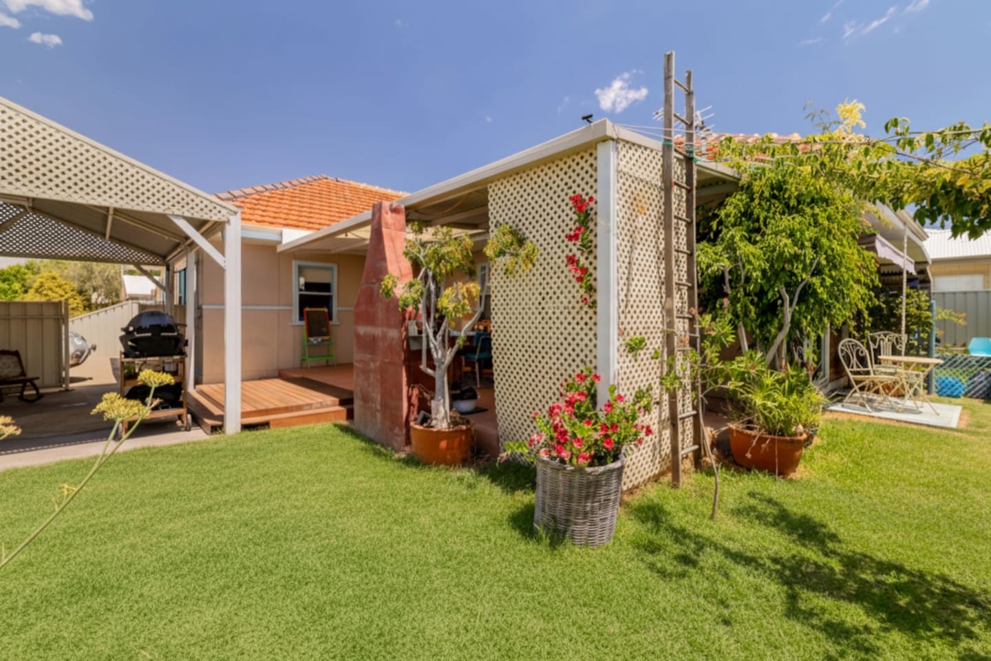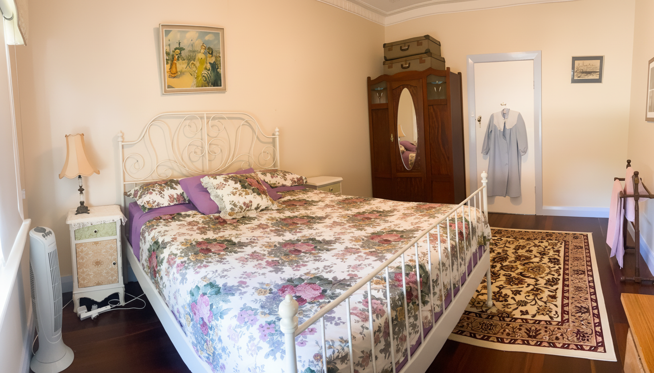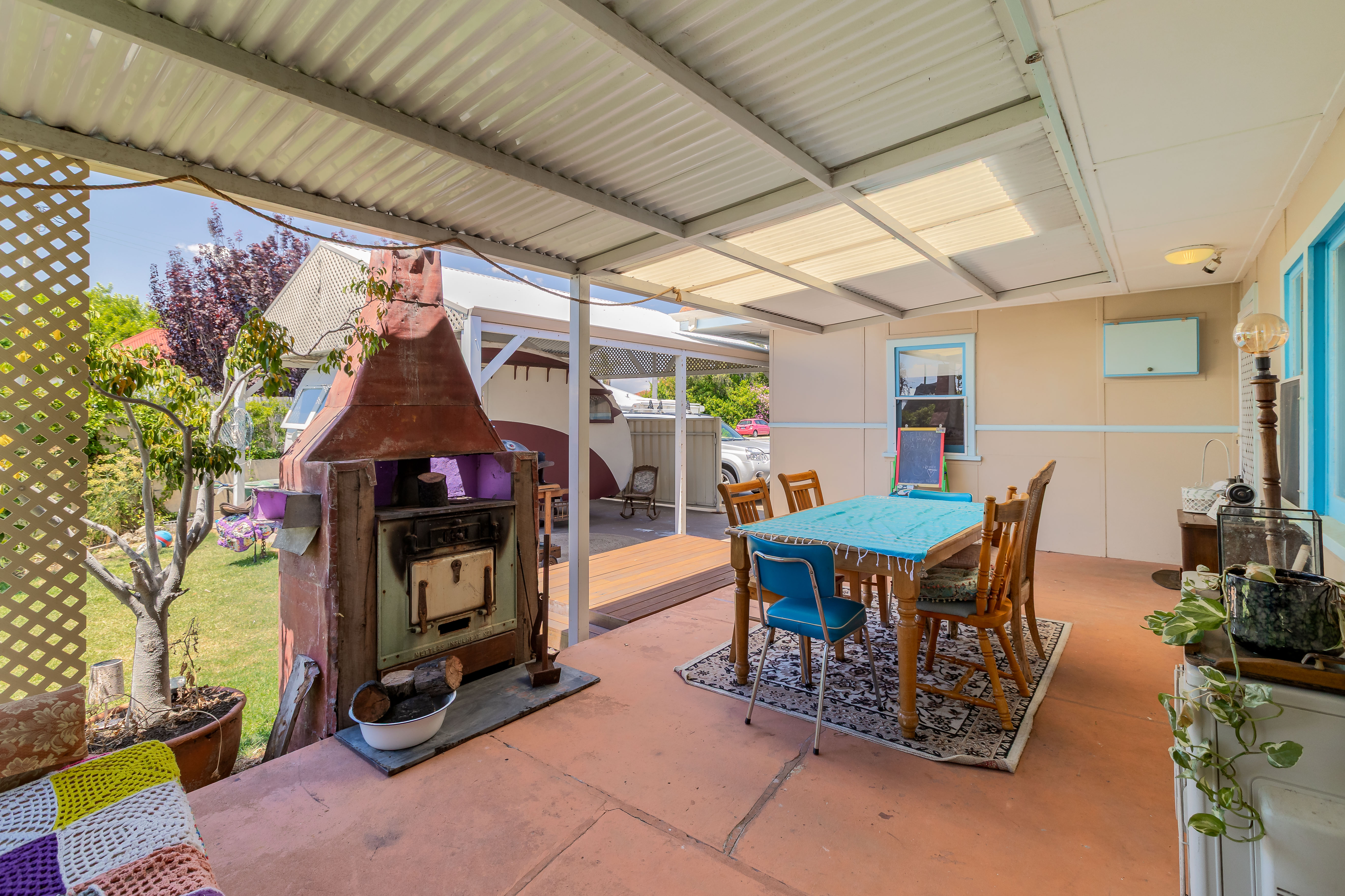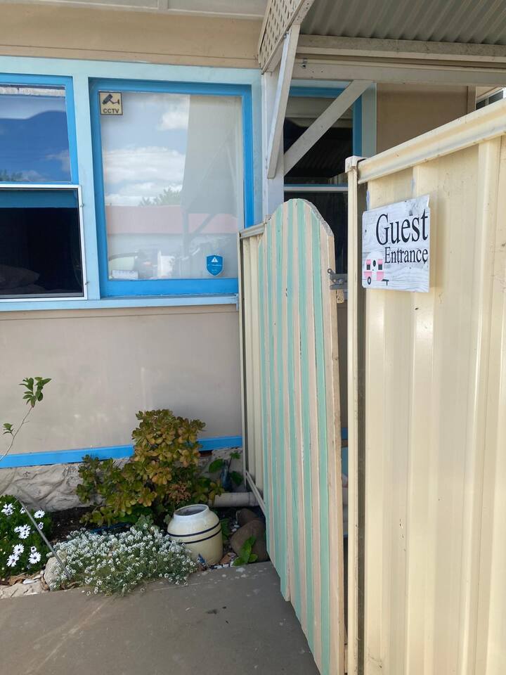 Original cottage and caravan with private verandah and enclosed lawned area. Owner or caretaker is in a side annex at the rear, however your house is completely private and there are no shared areas except the outside laundry. The laundry can be accessed by prior arrangement. Enter through the guest entrance to the left of the driveway.